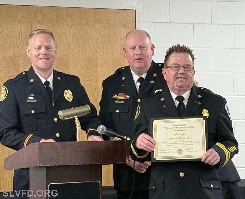 Also recognized was Deputy Chief James “Jimmy” Schooley, who was inducted into the Calvert County Fire & Rescue Hall of Fame. Schooley’s nearly 40 years of service to the St. Leonard community and Calvert County reflect a career defined by leadership, mentorship, and steadfast commitment to protecting others.